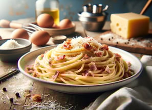 Creamy pasta dish with pancetta, eggs, and grated Pecorino cheese.
